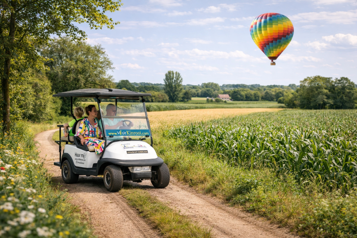 Montez à bord d'une confortable voiture électrique de Kinrooi pour un voyage de découverte le long de la vaste vallée de la Meuse et de ses paysages caractéristiques. Ensuite, l'aventure prend littéralement son envol, lors d'un vol en montgolfière à couper le souffle au-dessus de la Meuse. Du haut des cieux, vous découvrirez un paysage plein de contrastes : de la Meuse sinueuse aux vastes forêts.